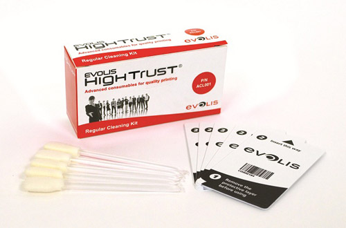 Das Bedrucken von Plastikkarten stellt gewisse Mindestanforderungen an die Reinigung des Druckers, da Plastikkarten statisch geladen sind und somit Staub in das Gerät ziehen. Staub kann die Druckqualität beeinträchtigen und schlimmstenfalls zu Funktionsstörungen des Druckers führen. Um dies zu verhindern bietet Evolis ein spezielles Reinigungsset mit Reinigungszubehör an, mit dem die drei empfindlichen Bauteile, dem Druckkopf, der Kartenführung und der Reinigungsrolle in einem Plastikkartendrucker regelmäßig gereinigt werden können.