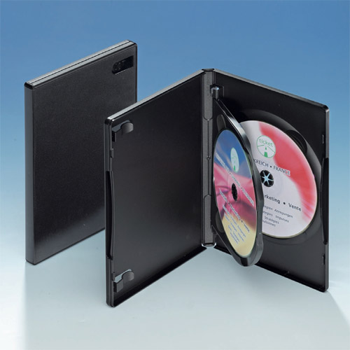 Das Marken-Produkt von Amaray! Schwarze DVD-Box mit Tray für 2 DVDs. Auf der Außenseite der Box befindet sich eine transparente Plastikhülle in die ein DVD Coversheet bzw. DVD Inlaycard eingelegt werden kann. Auf der linken Seite der geöffneten Box befinden sich 2 Kunststofflaschen mit denen ein umfangreiches DVD Booklet (Heft mit Informationen zur DVD) fixiert werden kann. Auf Grund der Große der DVD Box gibt es mehr Freiraum für graphisch interessante Artworks.