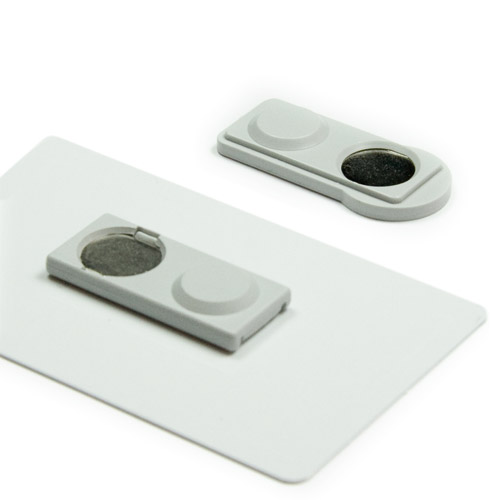 Bestehend aus einem weißen selbstklebenden Schildermodul und einem weißen Gegenhalter (Magnet) für normale, dünne Stoffe.
