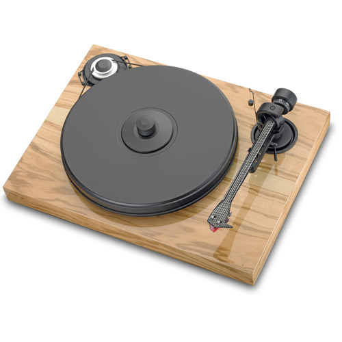 – Der resonanzoptimierte Plattenteller ist eine Sandwichkonstruktion aus dem Subteller, einem feingewuchteten 2kg schweren, aus verdichteten Holzfasern gefertigtem Teller, einer 4mm starken plangeschliffenen Auflage aus dem Schallplattenmaterial Vinyl und einer aufschraubbaren Plattenklemme aus Metall.