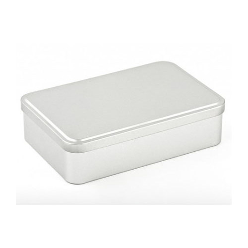 Silberne Stülpdeckeldose mit stapelbaren Deckel, Innenlack lebensmittelgeeignet.